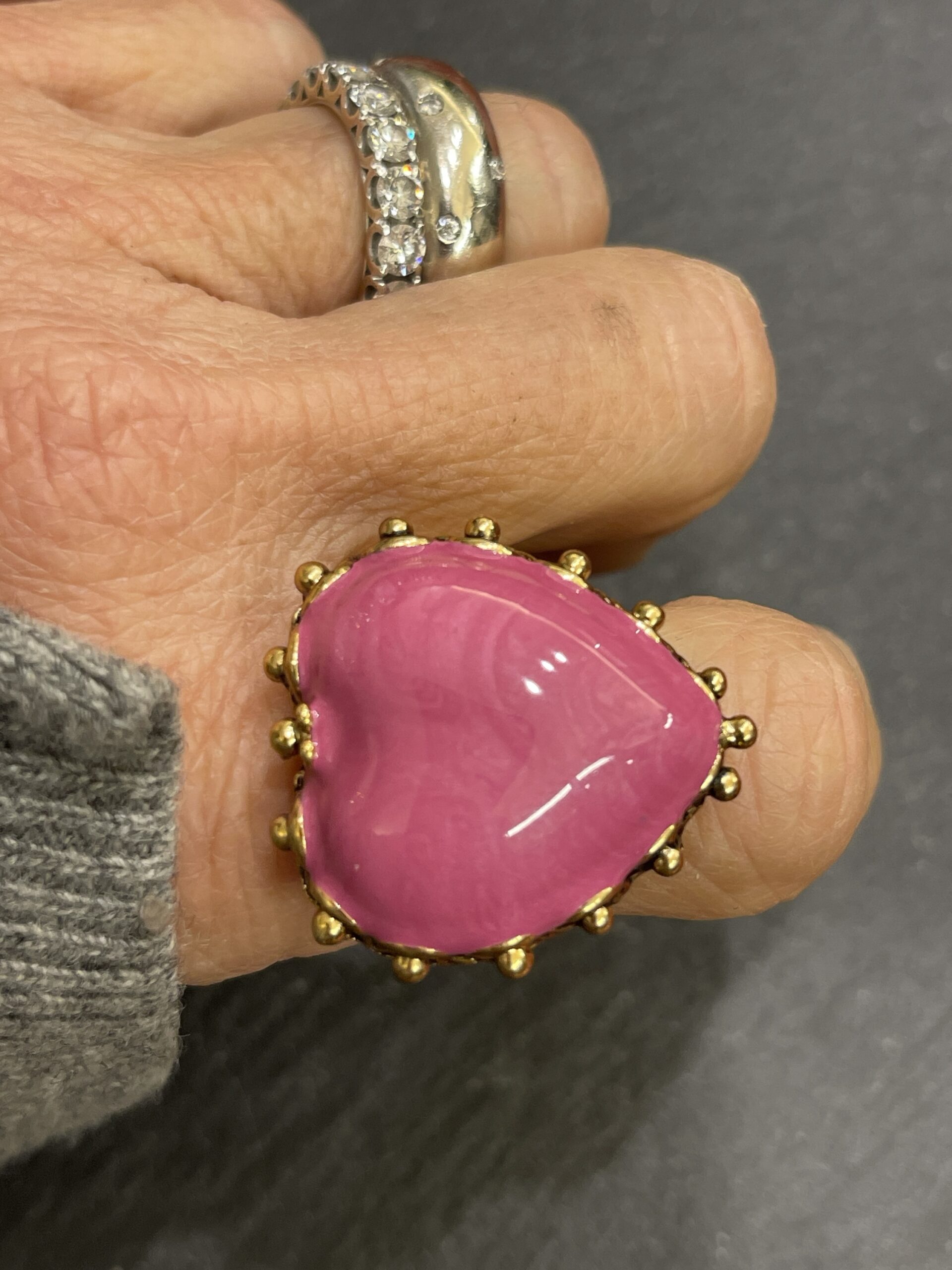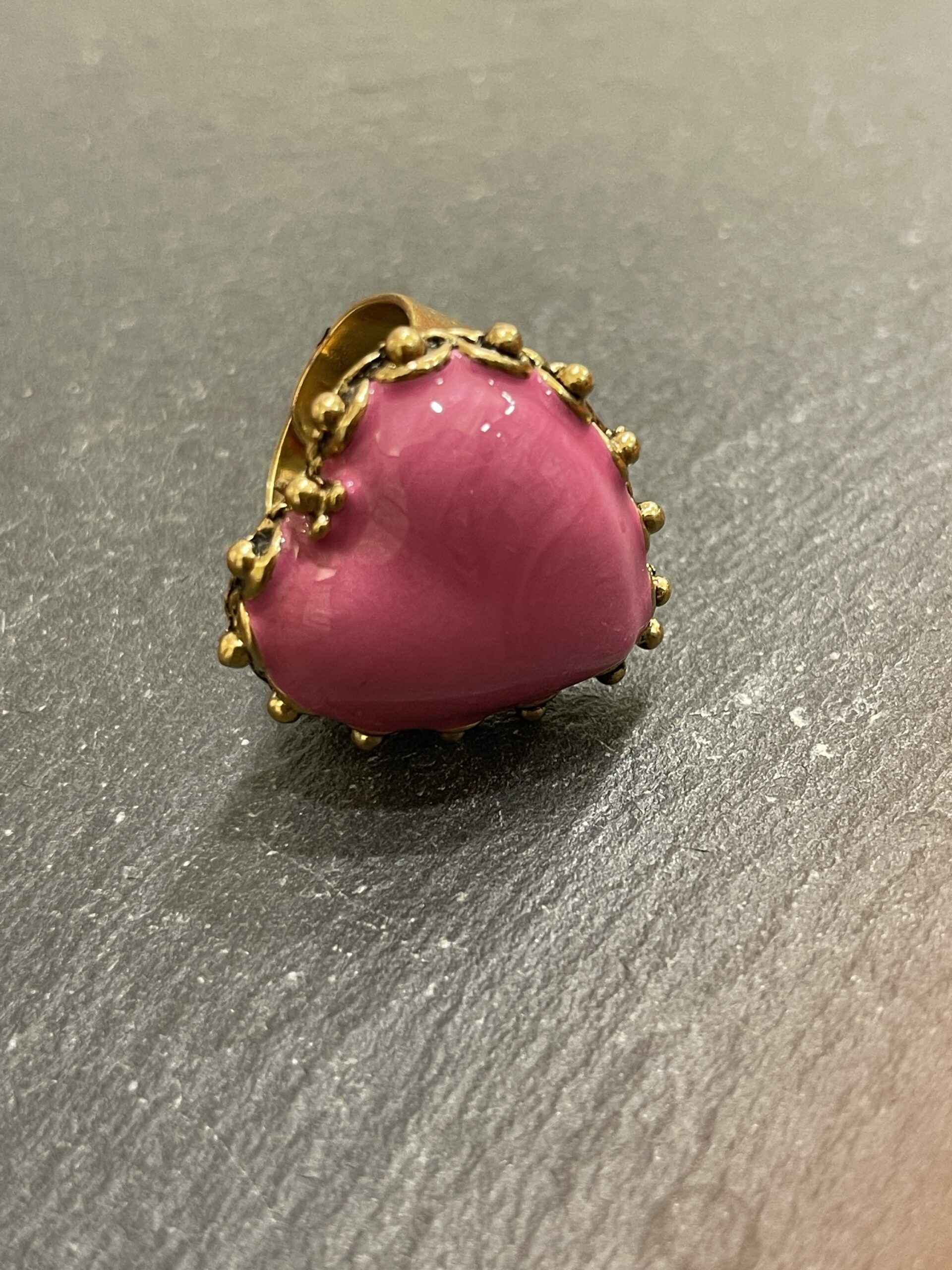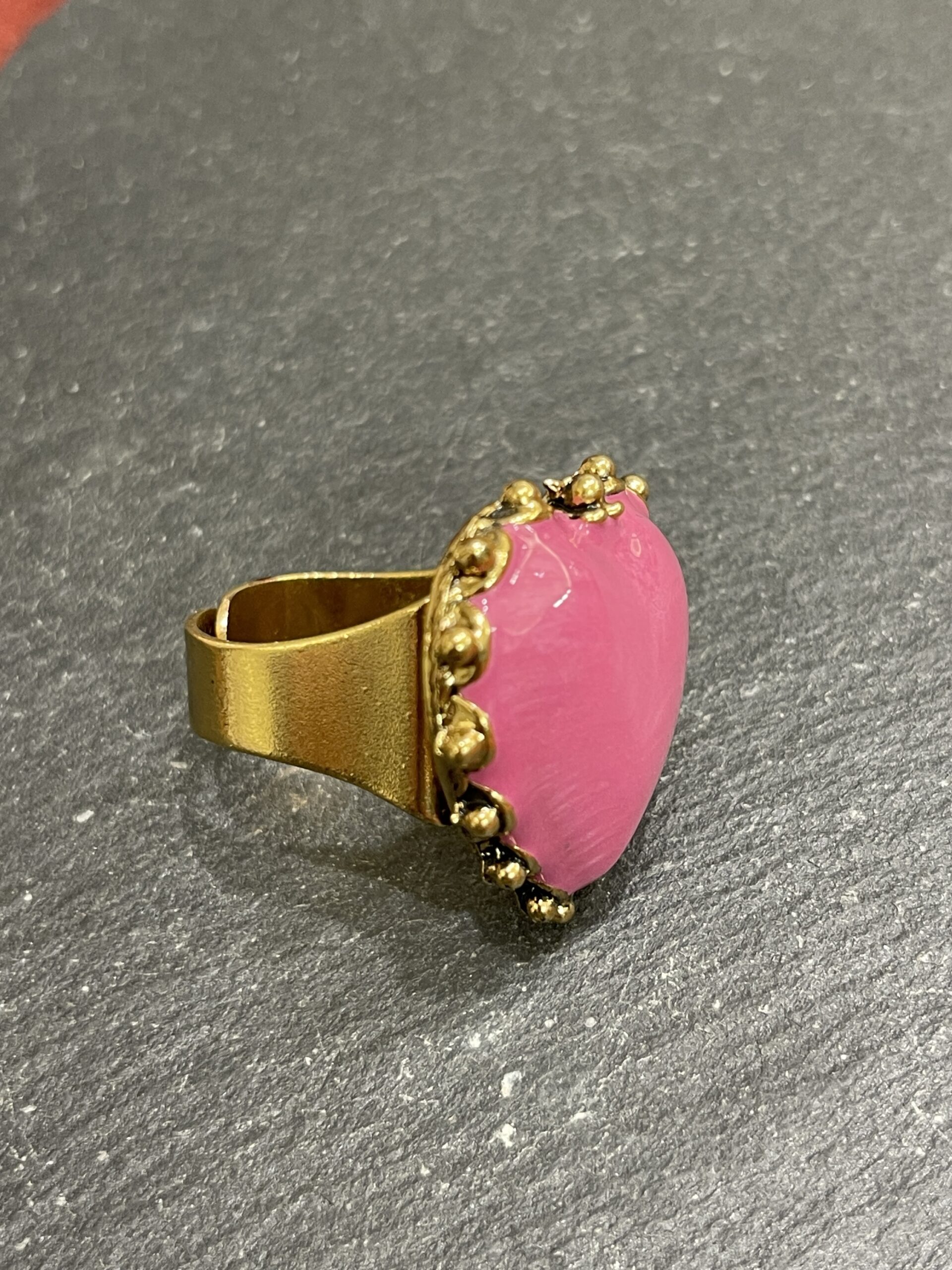 Anello con cuore in smalto rosa bijoux nikel free bagnato oro giallo 18 kt possibilità su richiesta di altri colori regolabile