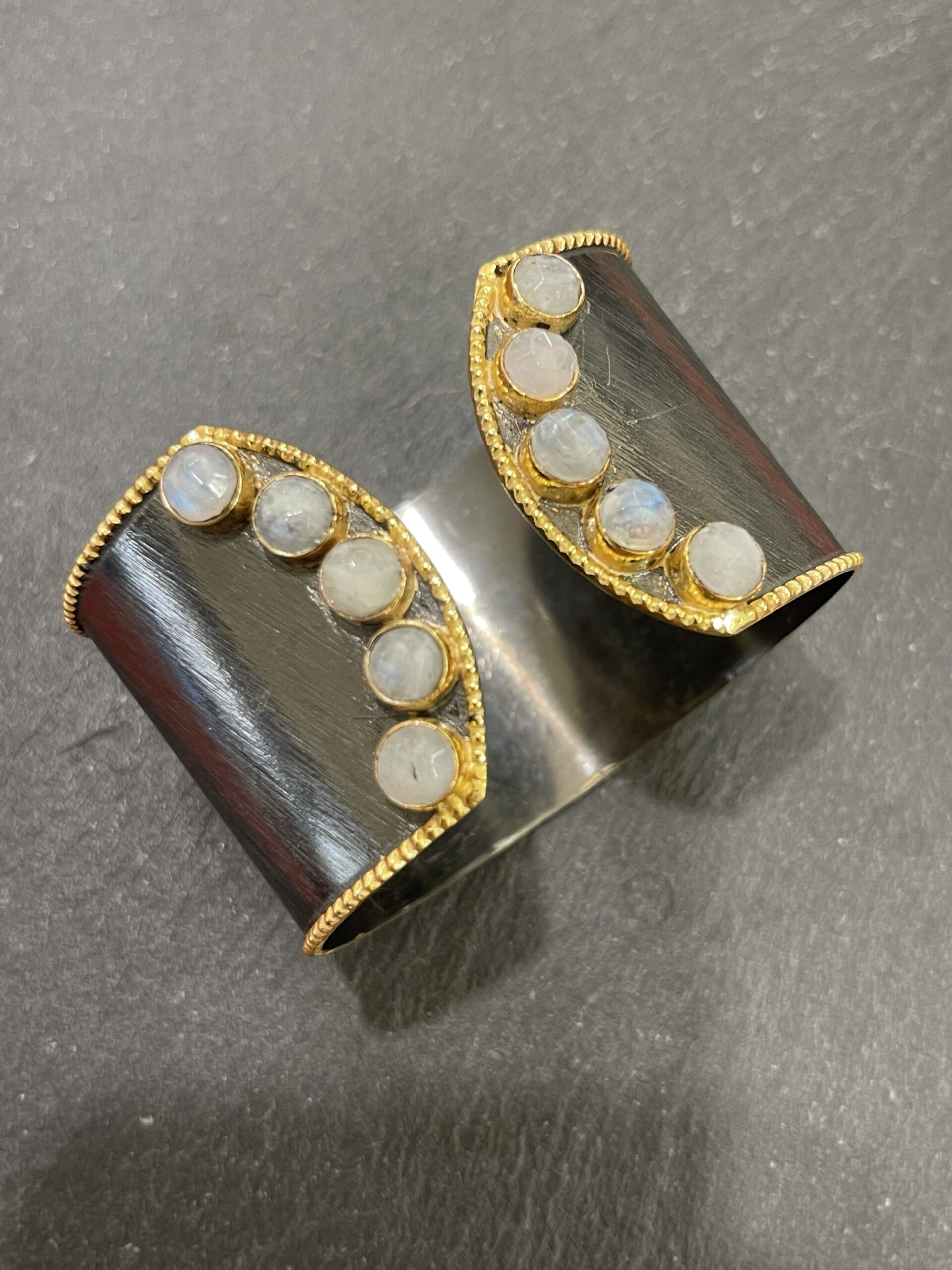 Bracciale rigido altezza 4 cm aperti sul davanti con labradorite naturale