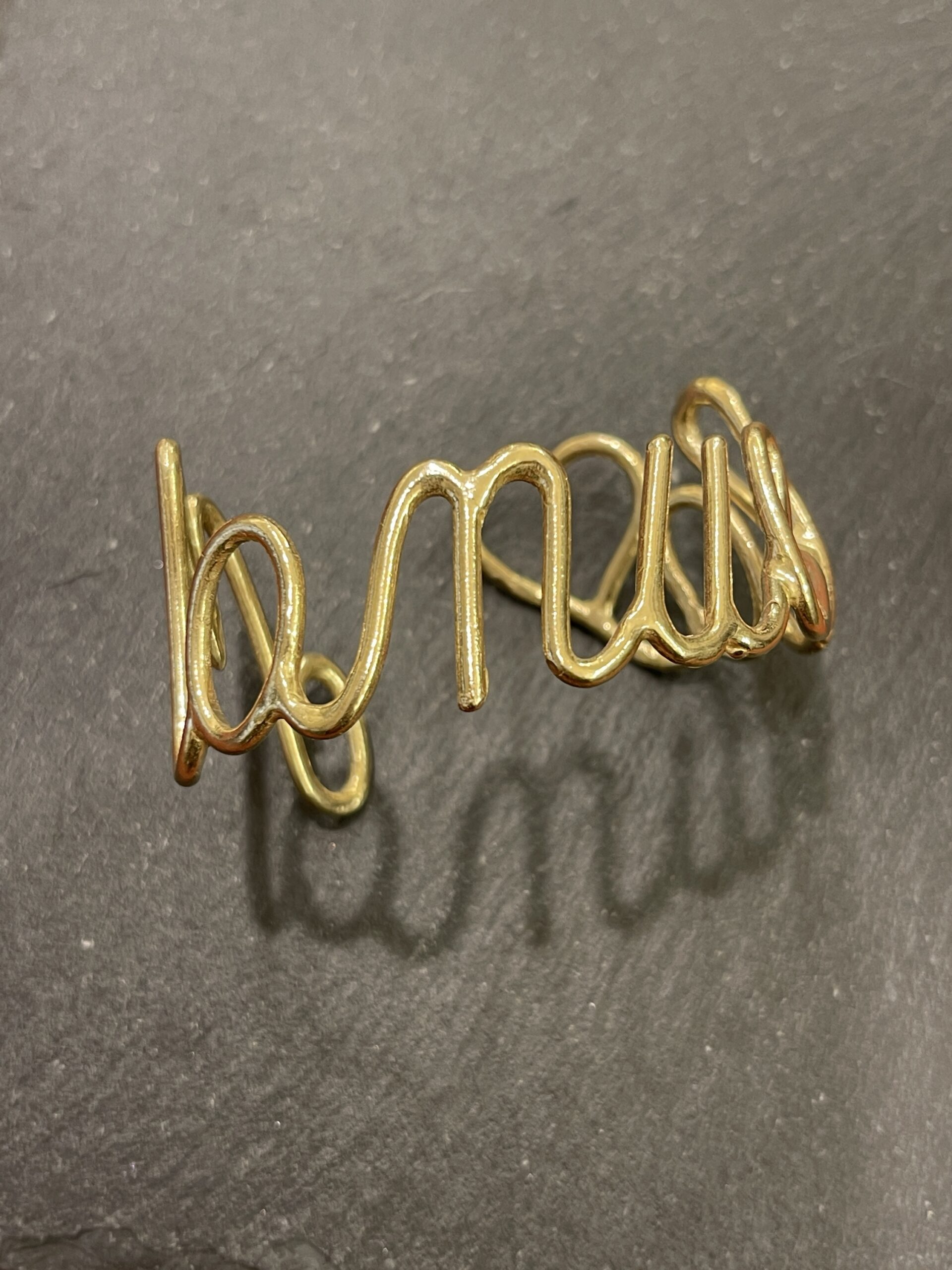 Bracciale rigido fatto a mano in bronzo bagnato oro giallo 18 kt