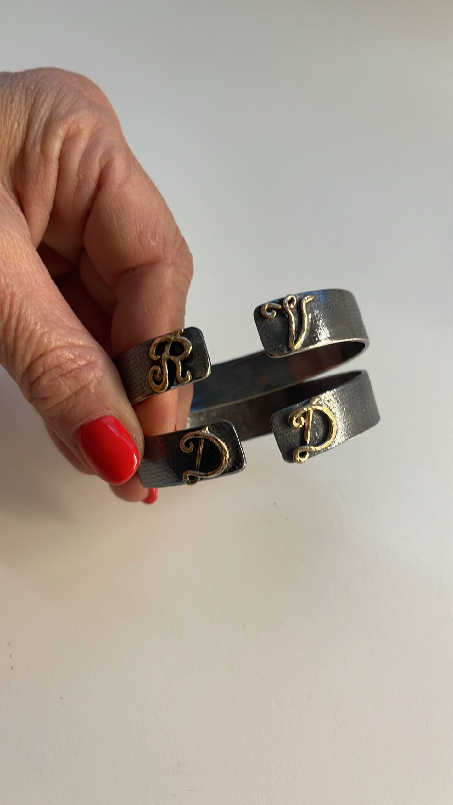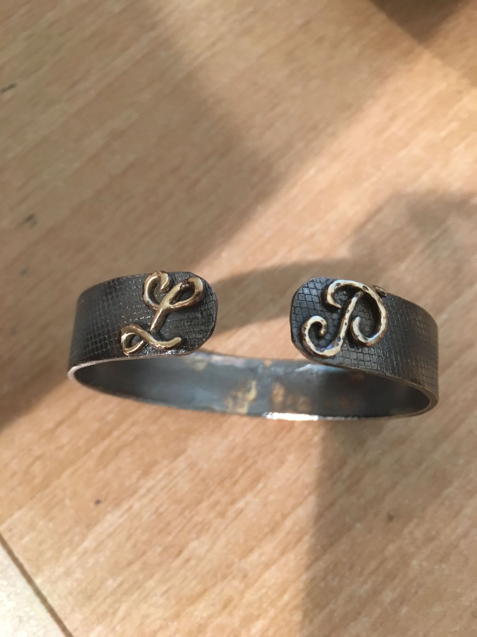Bracciali fatti a mano in argento con lettere in bronzo gialle nikel free