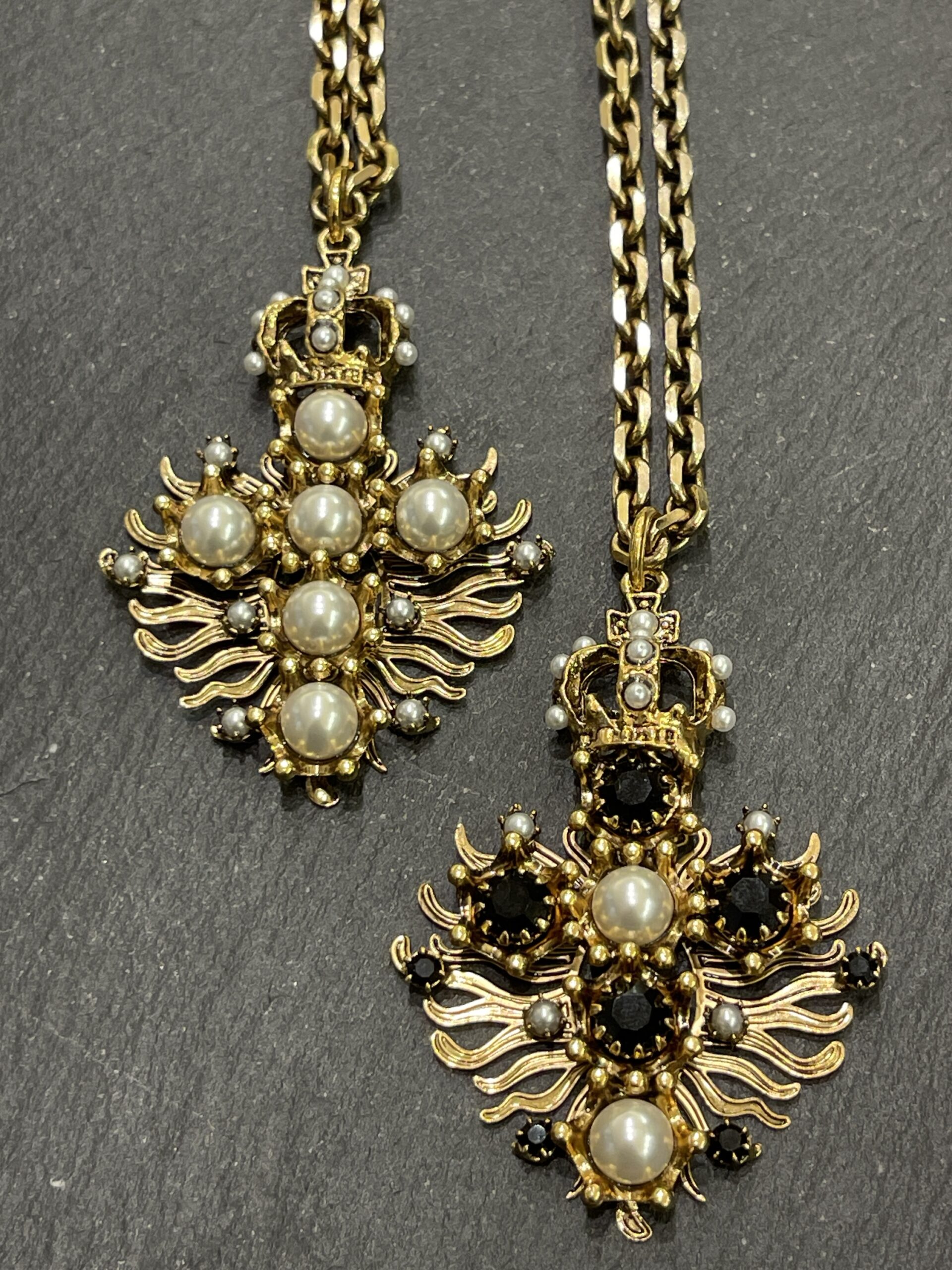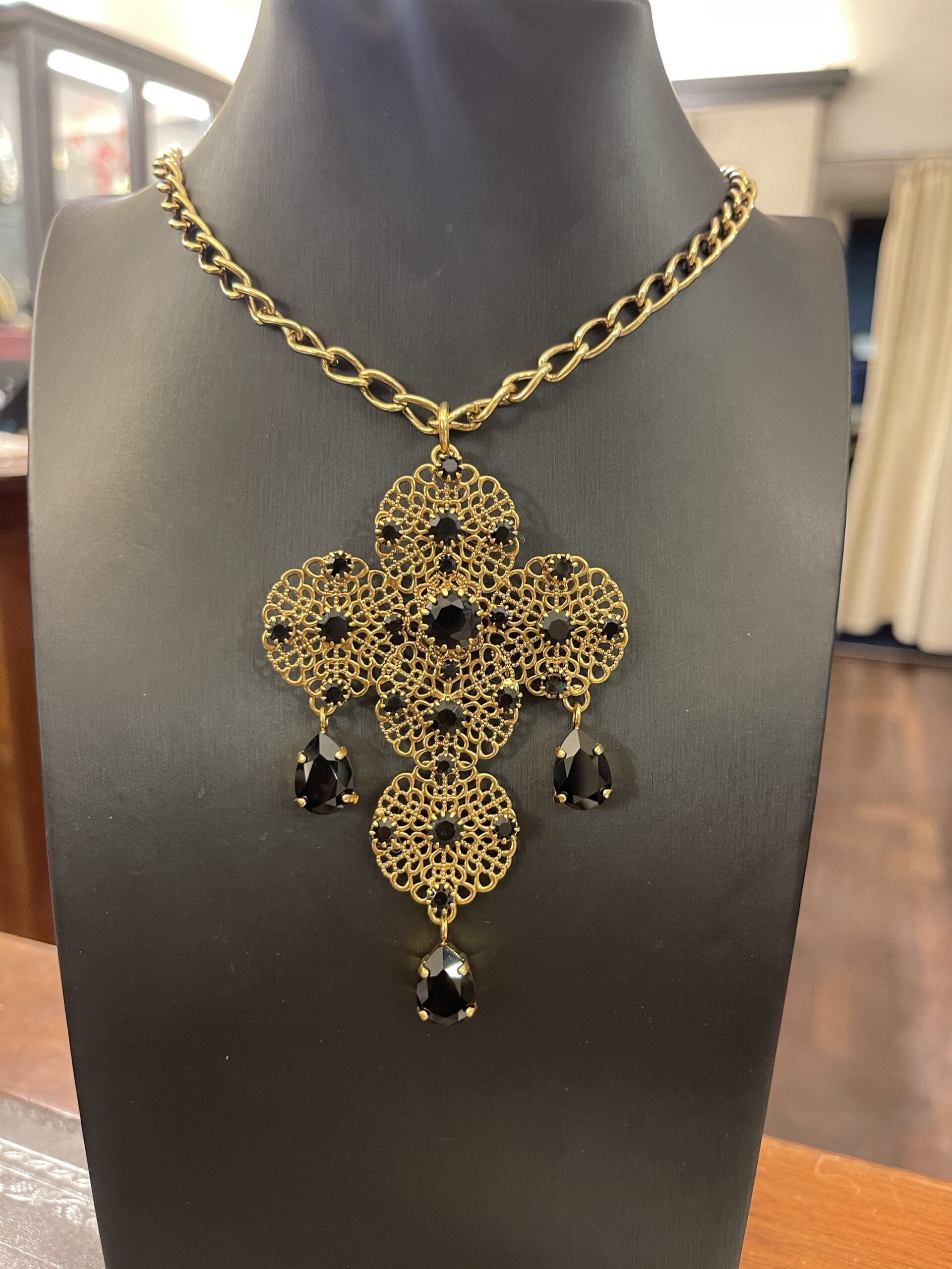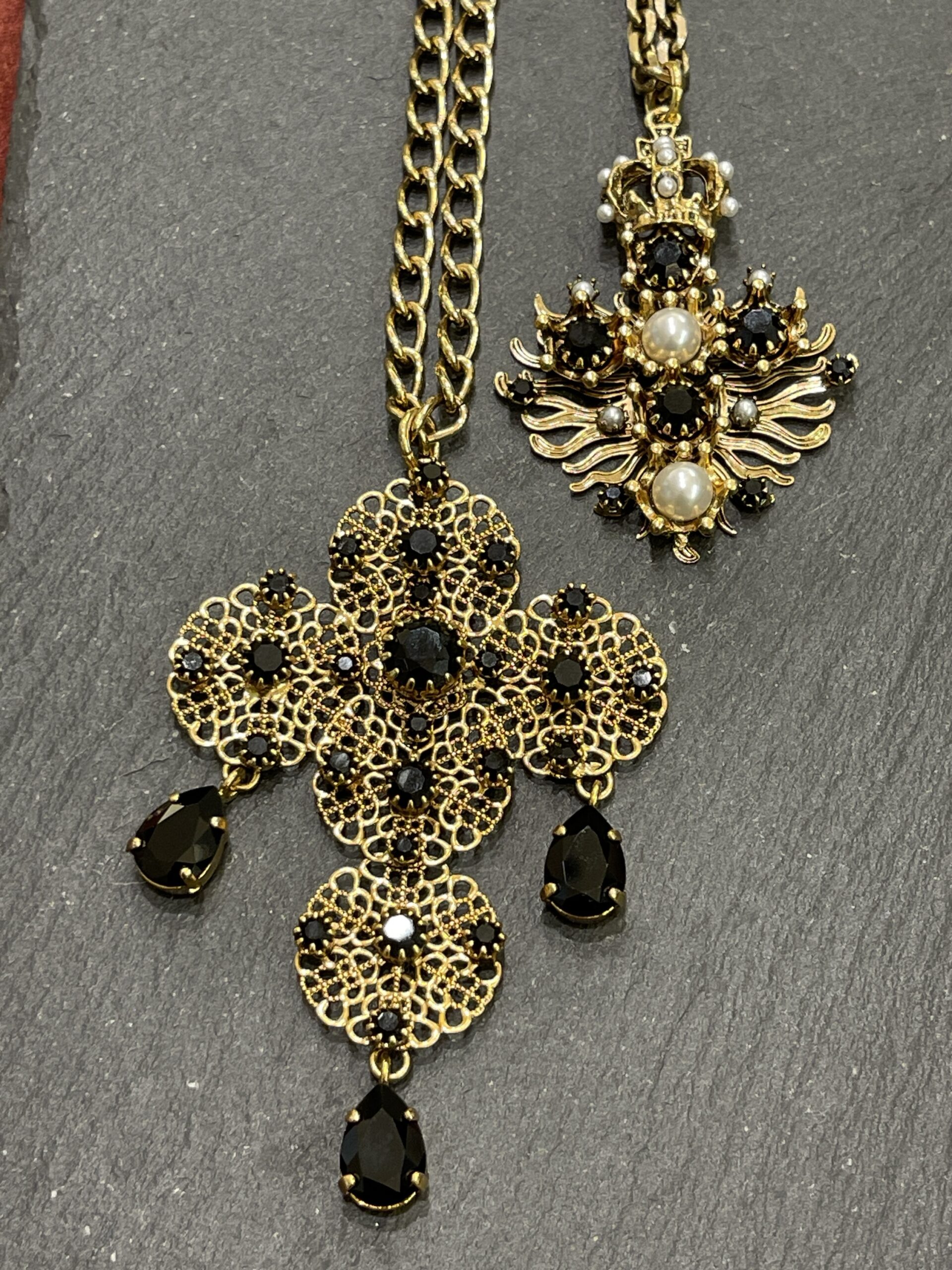 Collane con croce in bijoux cm 80 fatte a mano in Italia nikel free con pietre naturali ( perle onice zirconi swarosky etc)