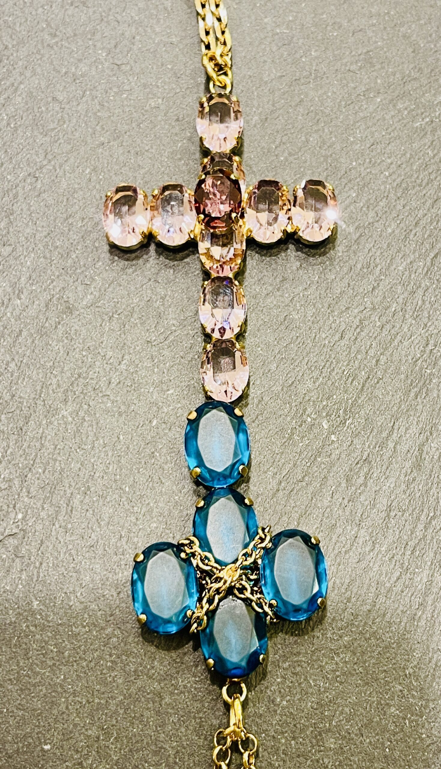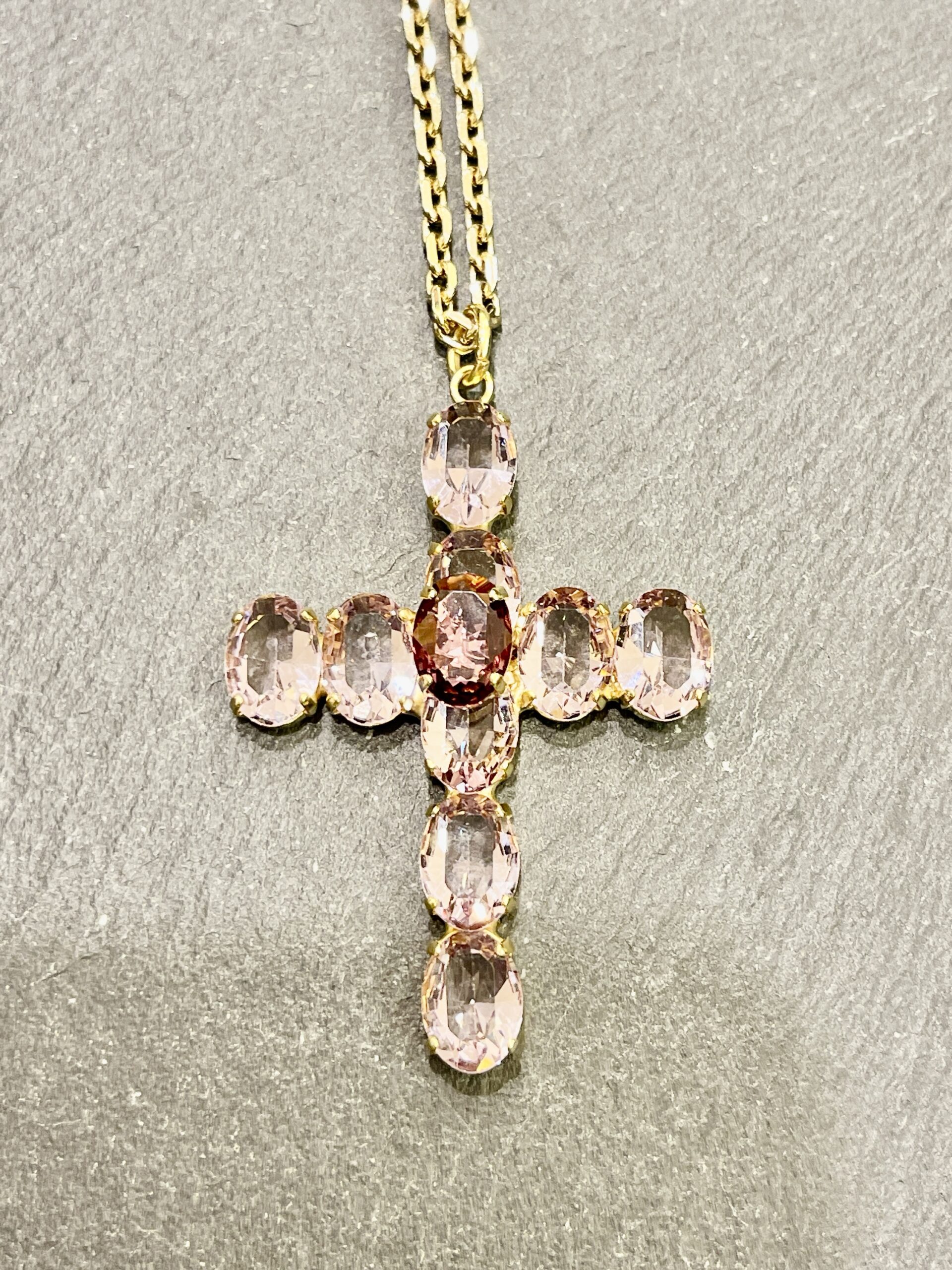 Croce cm 8 in bronzo e pietre naturali rosa