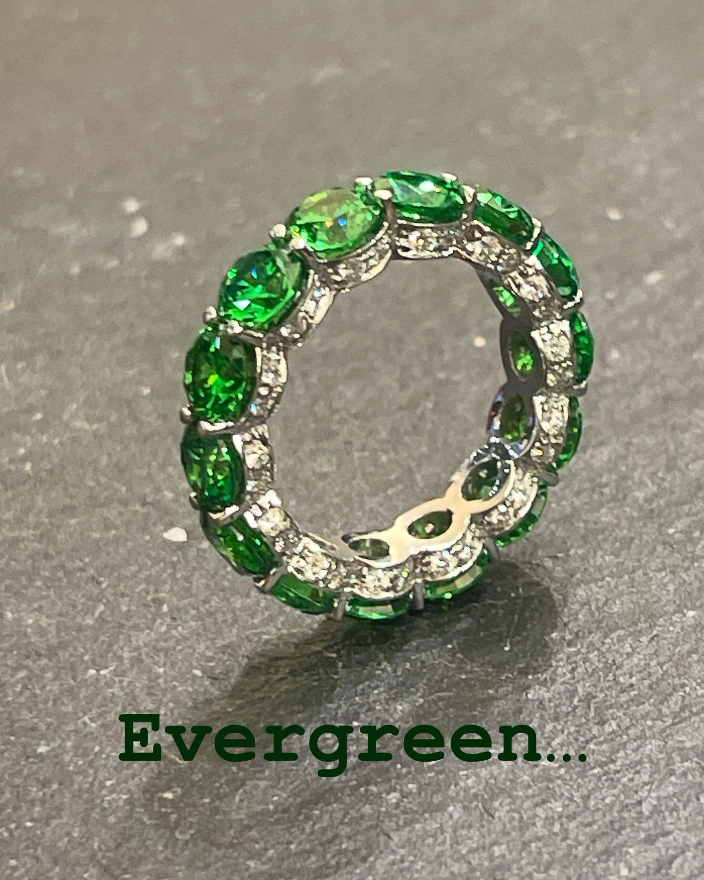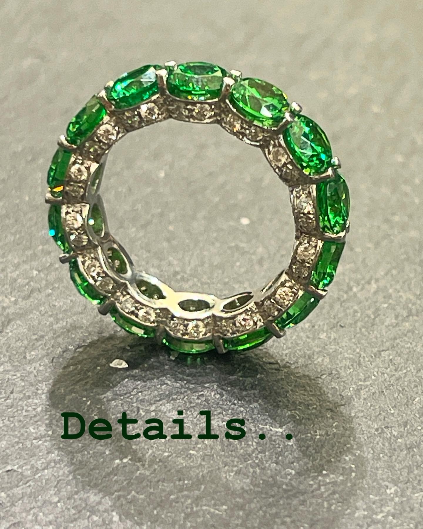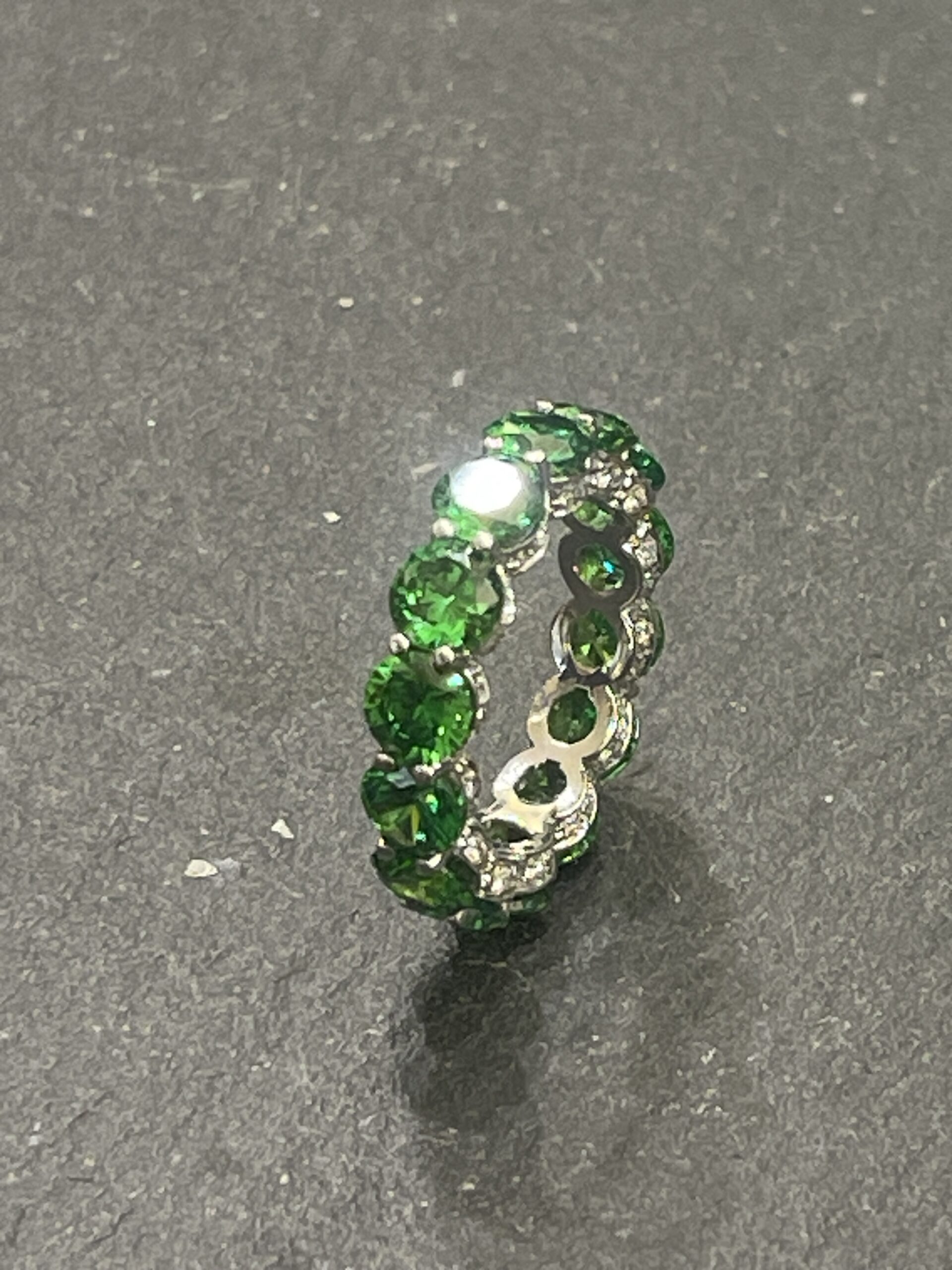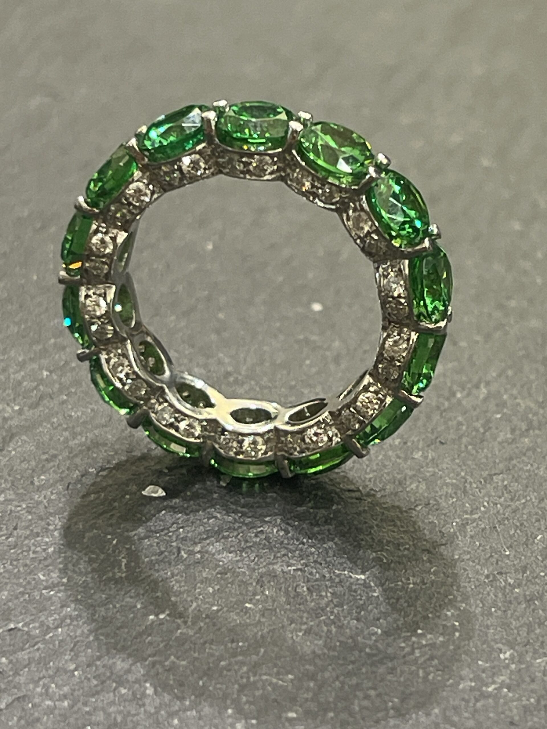 Fedina giro oro bianco con brillanti e tzavorite verde fatta a mano mis 13