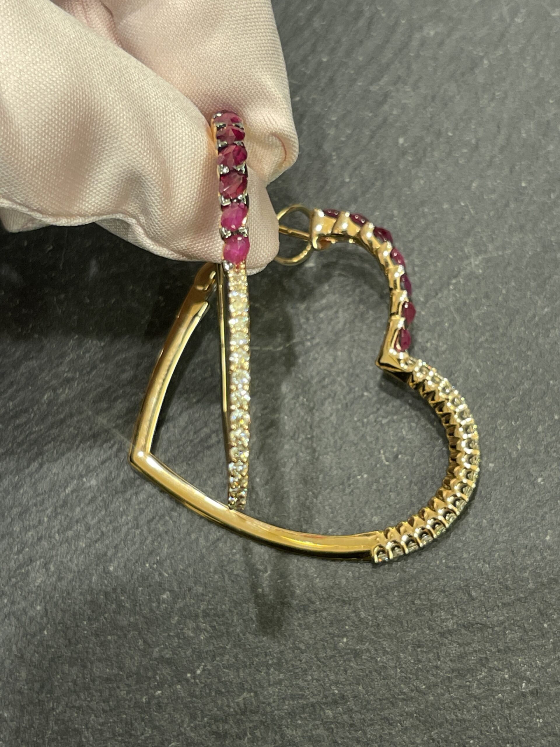 Orecchini a cuore in oro 18 kt rubini