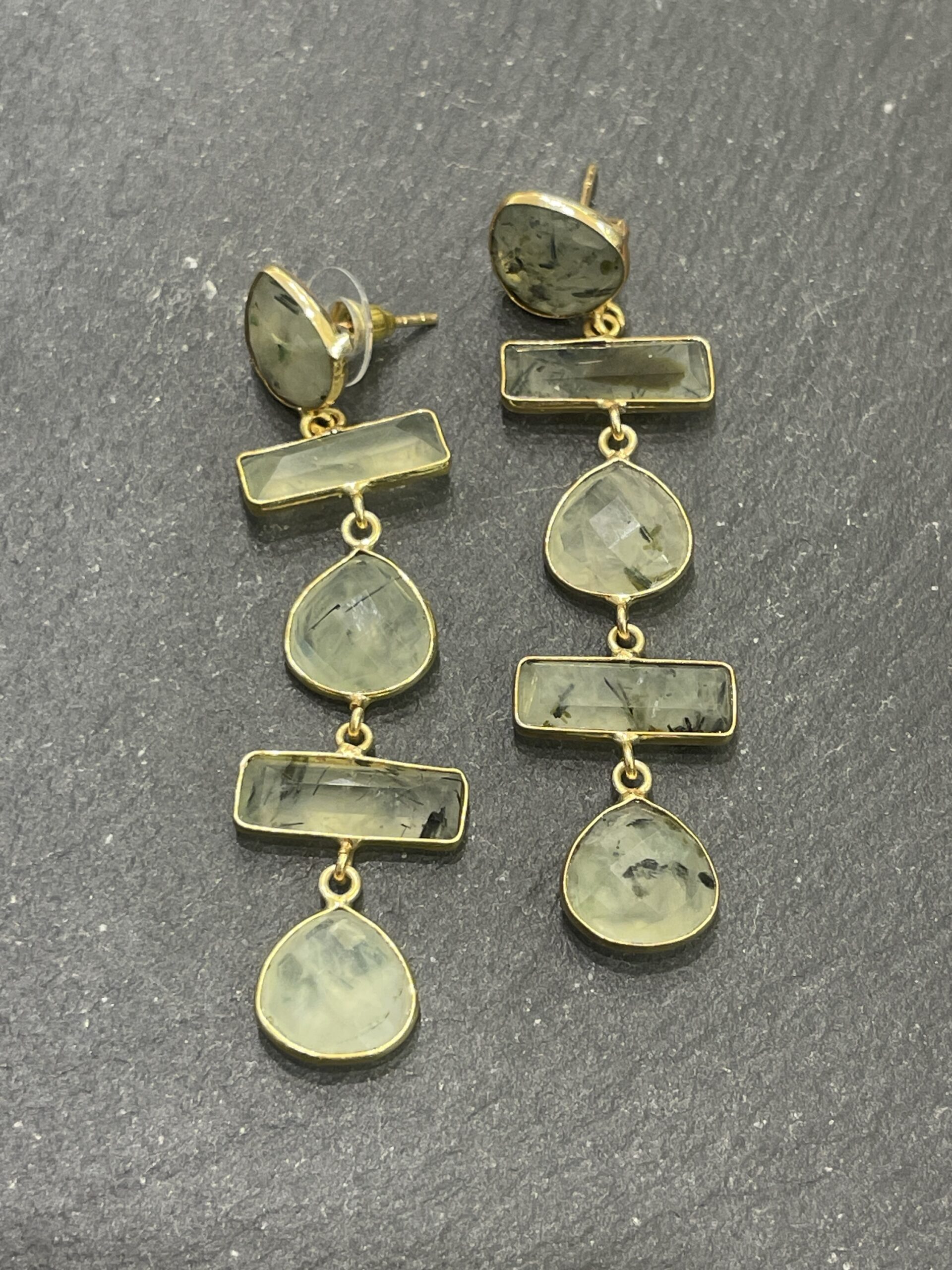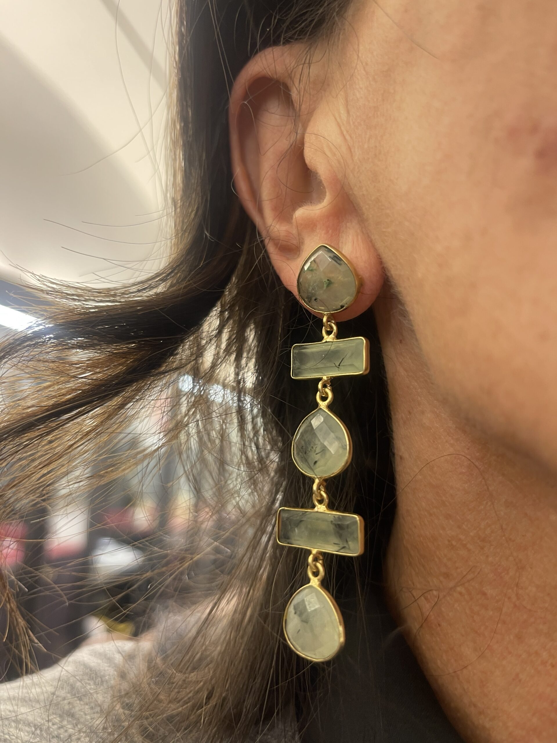 Orecchino con pietre naturali in quarzo rutilato verde chiaro cm 8 nikel free
