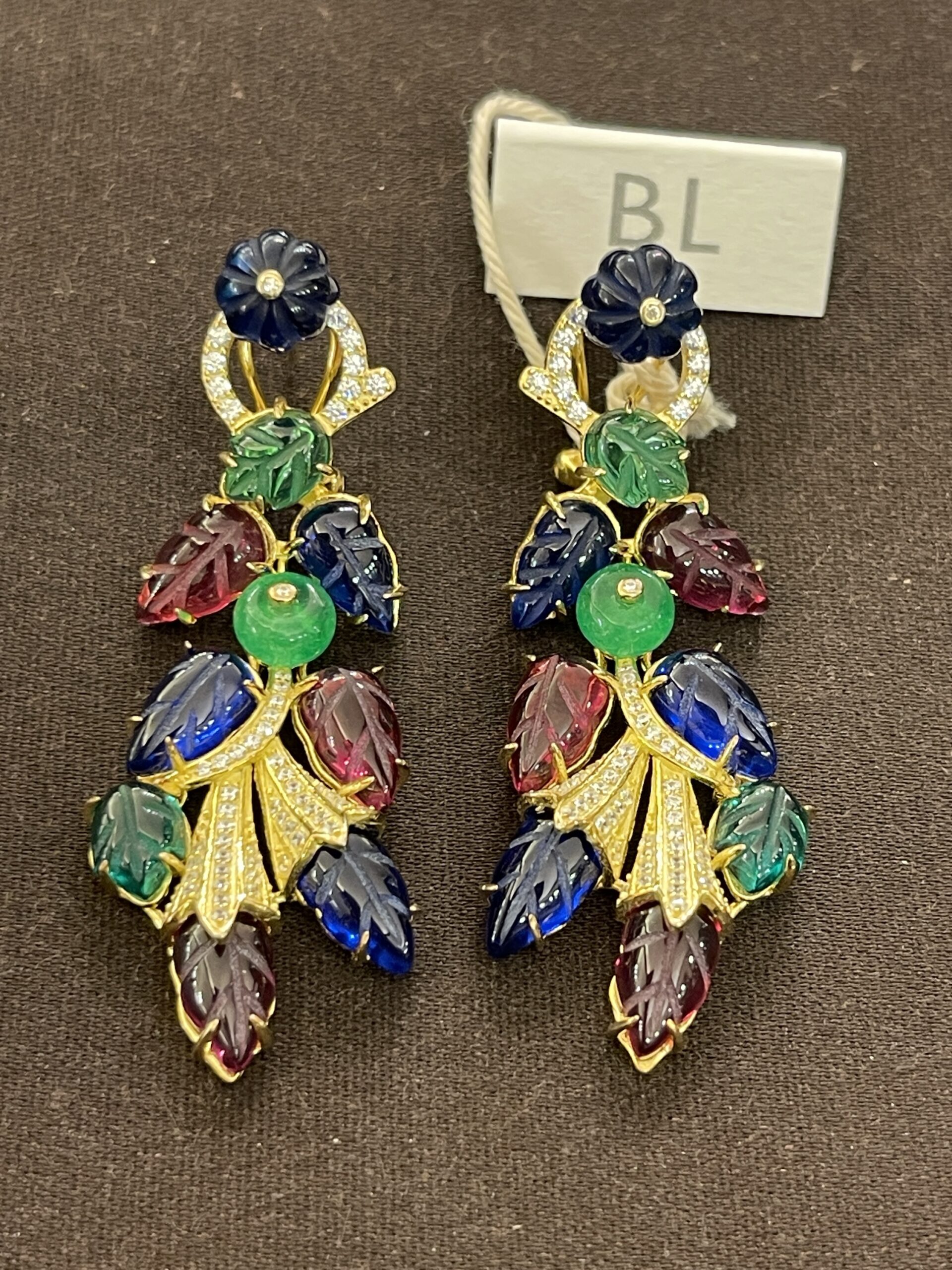 Orecchino in argento italiano 925 *con bagno oro giallo 1& kt pietre semi preziose