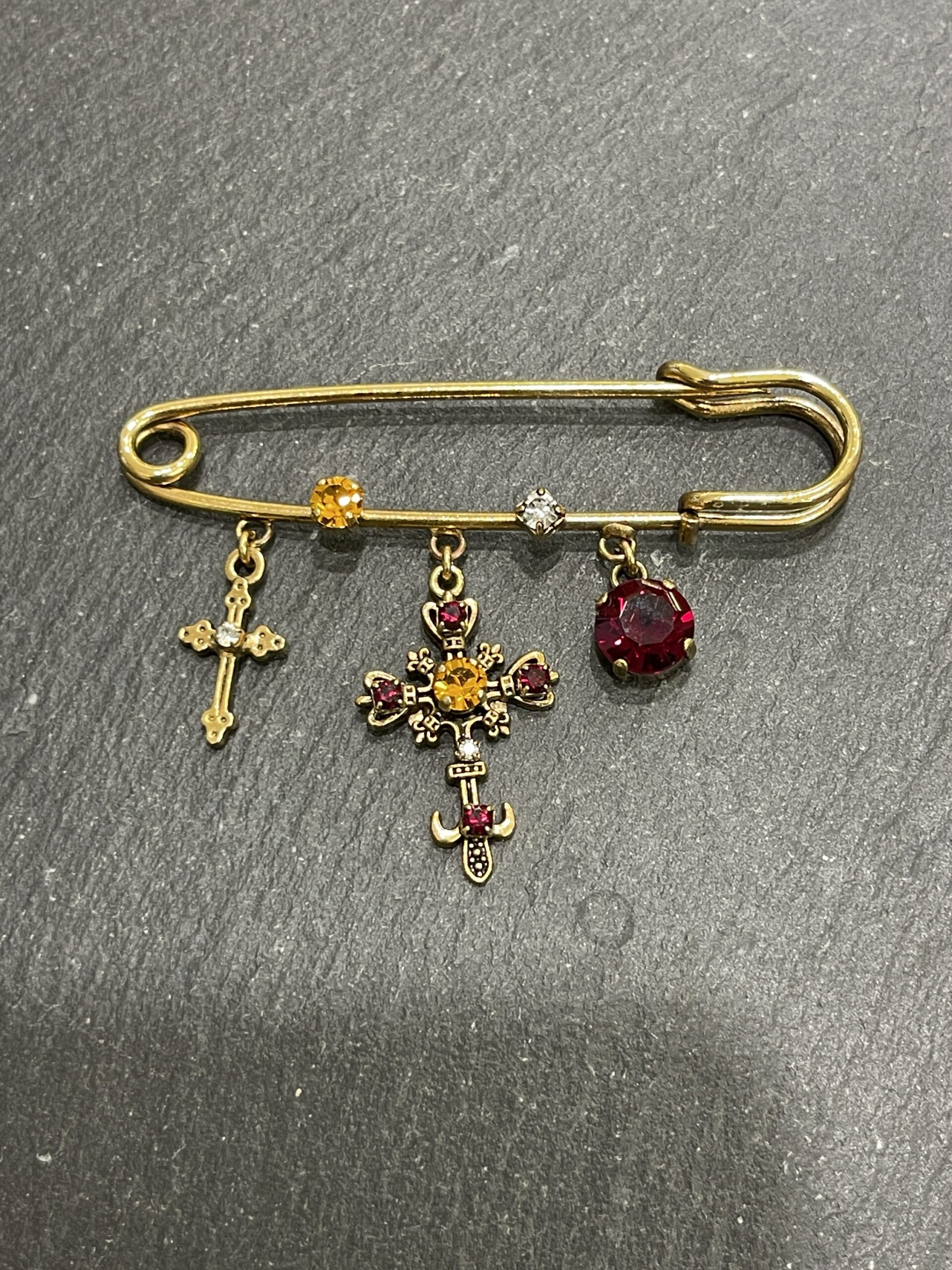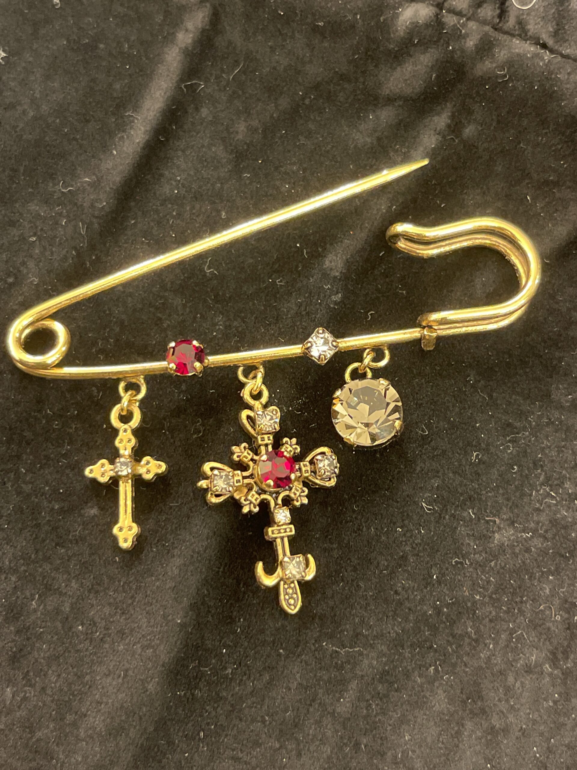 Spilla in bijoux disponibile con pietra rossa o bianca finale cm 7 fatta a mano in Italia
